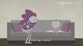 タイトルは、「around and around...」。映像は画面の中心に描かれた1本の線からはじまります。過去に、アジアの様々な国・地域から参加いただいた DigiCon アーティストそれぞれに5秒〜10秒ほどの映像を制作していただき、リレーのバトンをつなぐように個性豊かな映像をアニメーションでつなぎ合せ、1本の映像を制作しました。